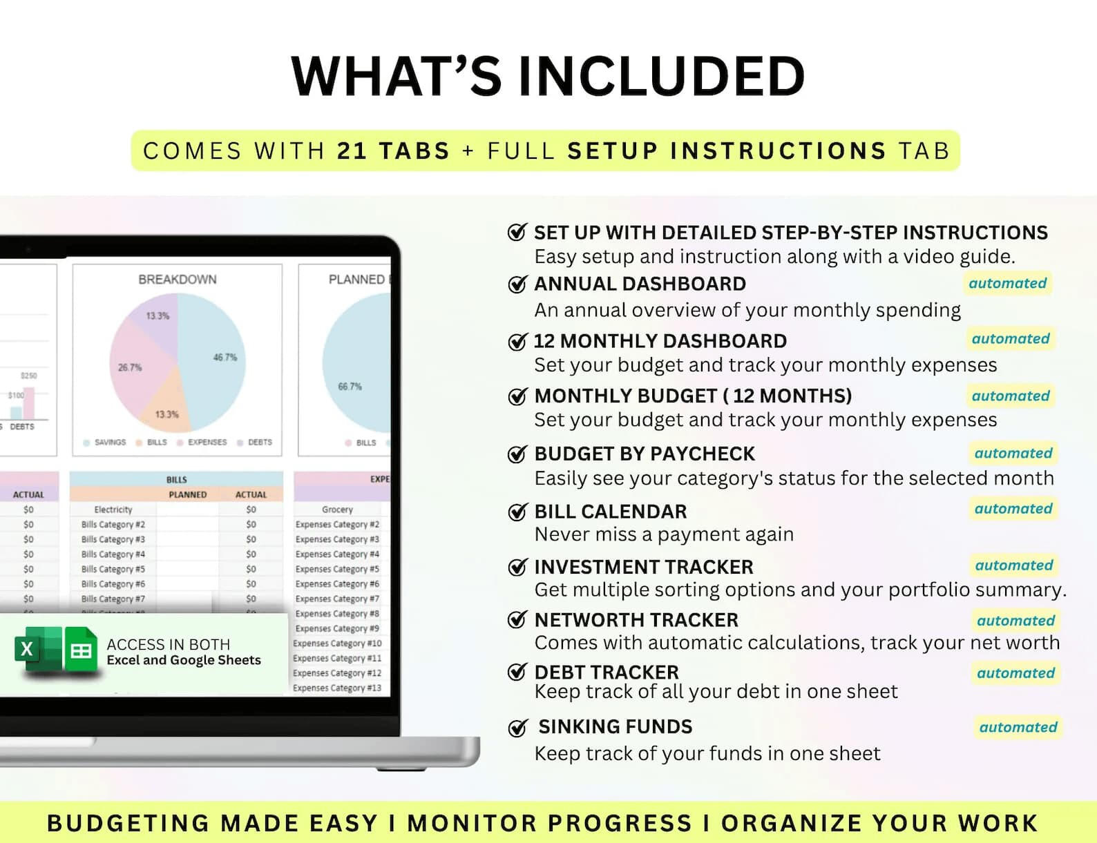Plan your money, track spending, and stay organized with one easy-to-use spreadsheet.
